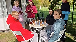 Arī mums pēc labi padarītā darbiņa bija iespēja nobaudīt no dārza augļiem tapušos gardumus - limonādi un saldējumu.