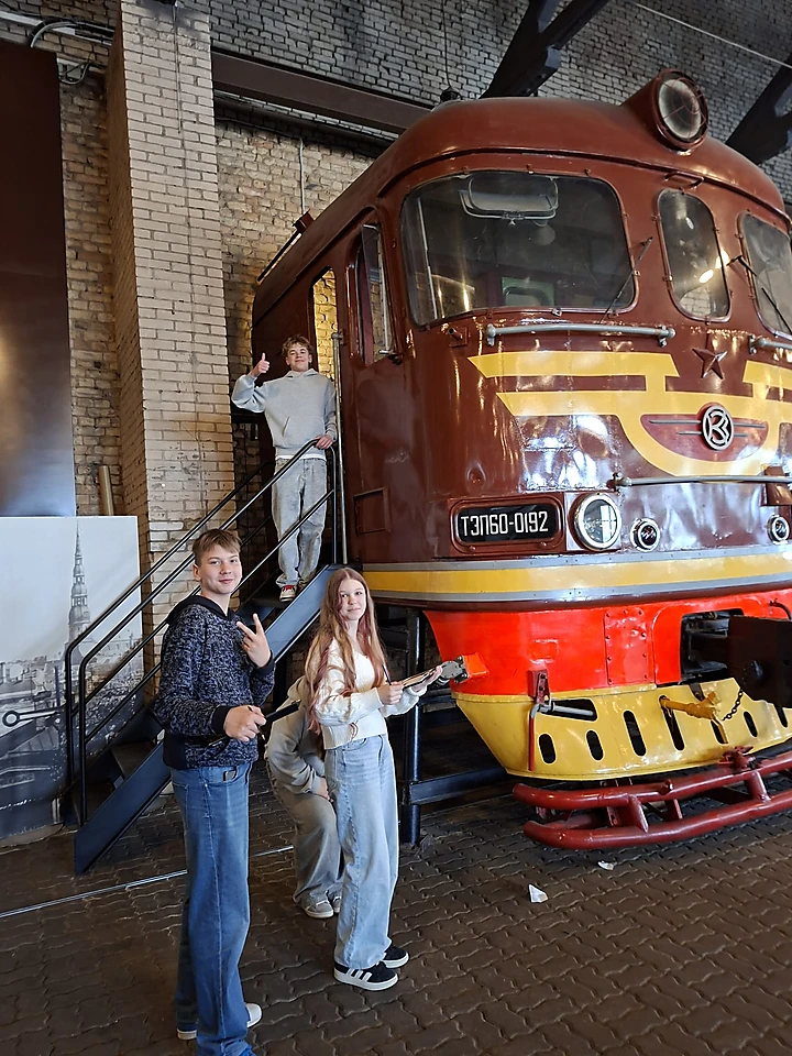 Rīgas dzelzceļa muzejā abām klasēm bija sagatavota foto orientēšanās nodarbība “Izzini dzelzceļu muzejā”. Apskatījām dažādas ekspozīcijas gan ārā, gan iekštelpās. Kopumā bija interesanti iepazīt dažādus vilcienu vagonus, uzzināt, kādi tie bija agrāk, un iedziļināties to vēsturē.