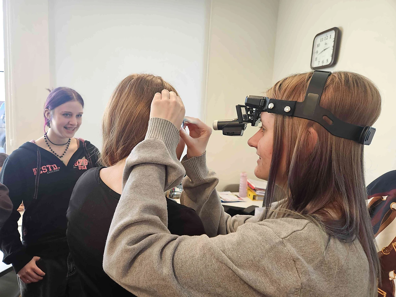 Otolaringoloģe, arodveselības un arodslimību ārste Inita Sevčika iepazīstināja ar sava darba specifiku un ikdienā izmantotajiem instrumentiem, uzsverot, ka mūsdienās šajā jomā pieejamas modernas un daudzveidīgas tehnoloģijas.