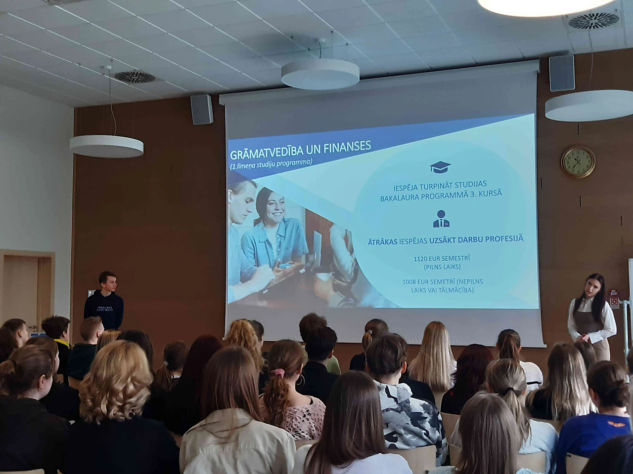 Sakām lielu paldies abiem vēstnešiem, kas šajā pavasara dienā ieradās pie mums, lai motivētu mūs studēt pēc ģimnāzijas absolvēšanas.