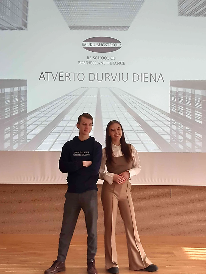 Viktorija un Ingmārs šobrīd ir 1.kursa studenti. Skolas laikā absolventi mācījās vienā klasē, tāpat arī šobrīd viņi studē vienā programmā - Biznesa procesu vadība, kurā pilnveido prasmes, lai varētu vadīt darbu strauji mainīgos apstākļos.