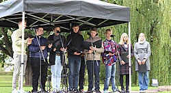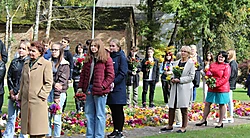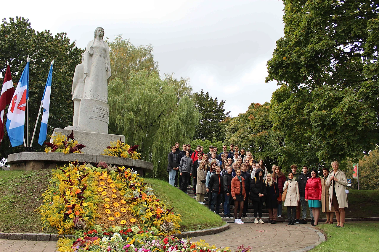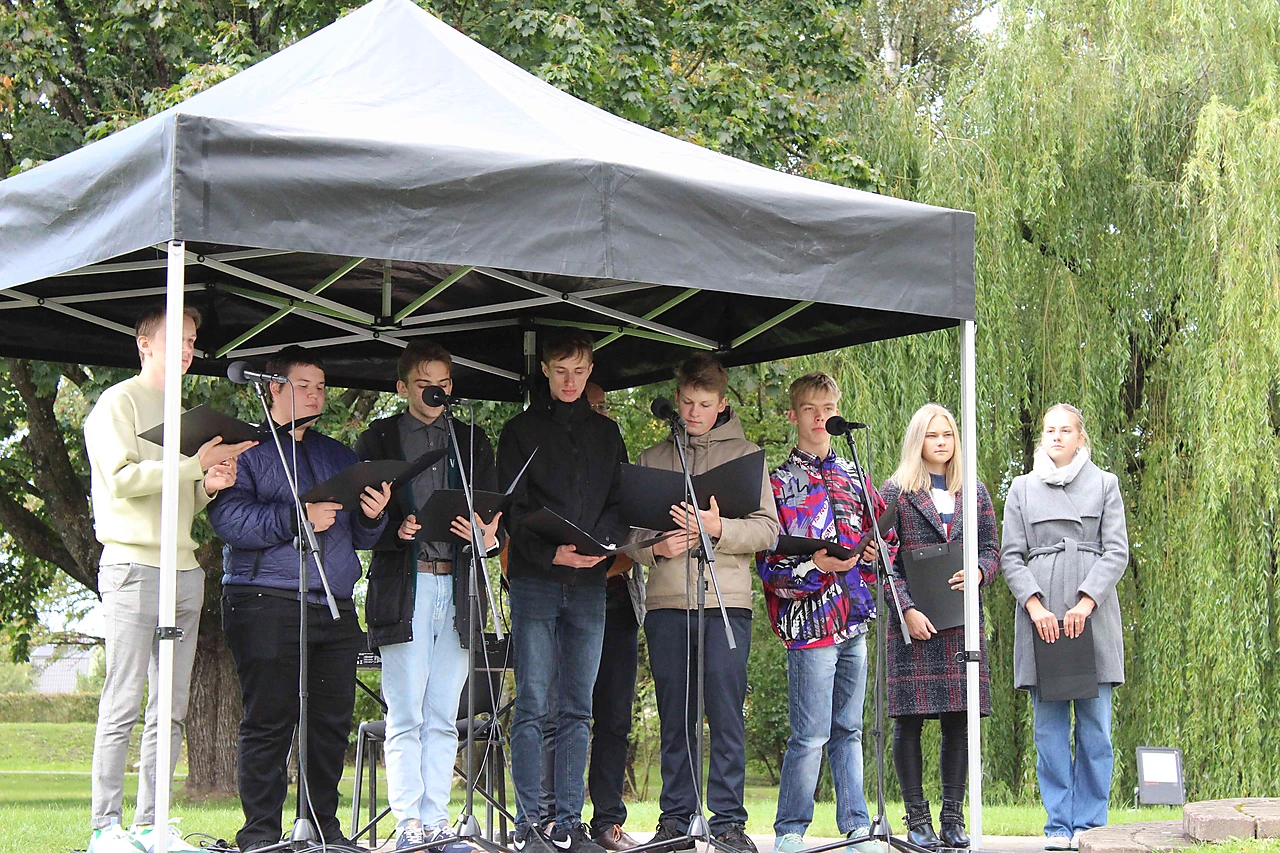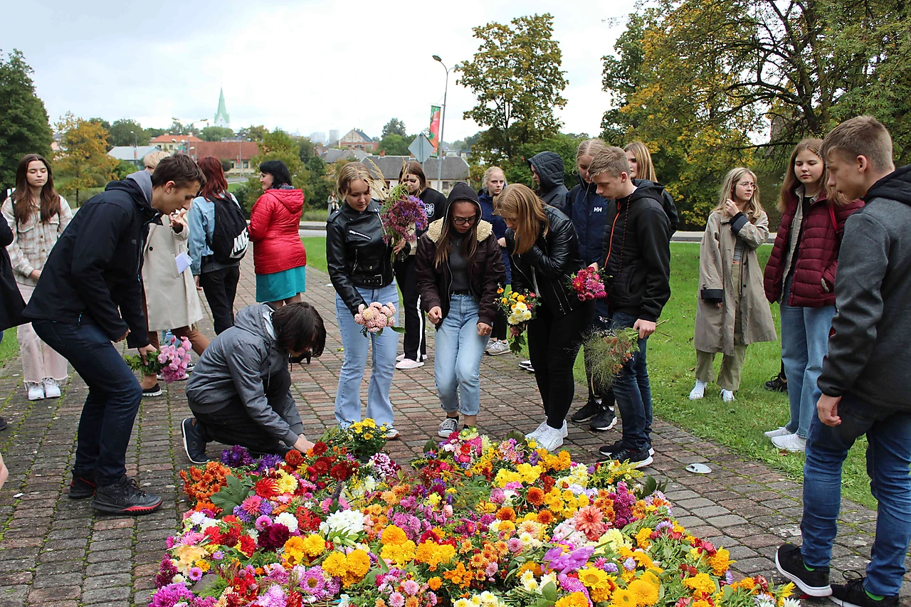 Turpinot tradīciju, 21.septembrī Dobeles Valsts ģimnāzijas 11.klases skolēni devās pie Dobeles Atbrīvošanas pieminekļa, kur tika veidots ziedu paklājs. Skolēni uzstājās ar skolotāju Vēsmas Rones un Ilzes Oses sagatavoto dzejas montāžu, un par muzikālo sveicienu bija parūpējušies KPTT ansambļa puiši skolotāja Raimonda Bulmera vadībā.