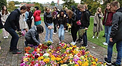 Ziedu paklājs par godu Dobeles Atbrīvošanas pieminekļa 82.gadadienai