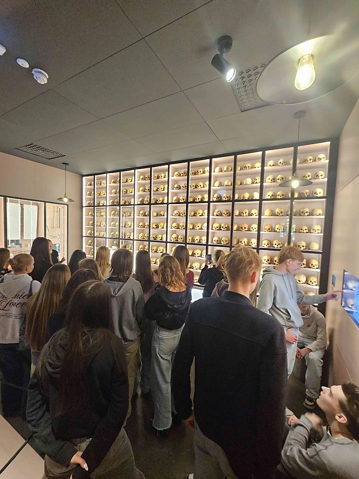 Tālāk devāmies uz RSU Anatomijas muzeju, kur mūs gaidīja gan skeleti un orgāni, gan unikāli vēsturiski eksponāti, kas ļāva ieraudzīt cilvēka ķermeni no pavisam cita skatpunkta. Mēs iedziļinājāmies cilvēka organisma uzbūvē un tā sarežģītībā, kā arī atklājām, cik nozīmīga bijusi medicīnas attīstība.