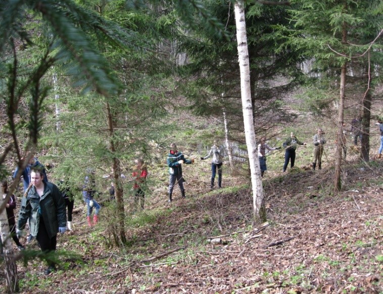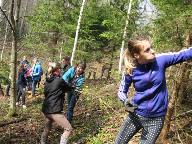 Š.g. 29. aprīlī Dobeles Valsts ģimnāzijas 7. b un 8. b klases un audzinātājas Iveta Meija un Marite Barakauskaite devās uz Pokaiņu mežu, lai sakoptu vidi, kur rudenī tikšot izveidotas gaisa takas.