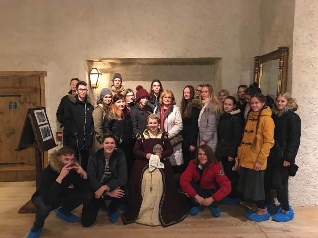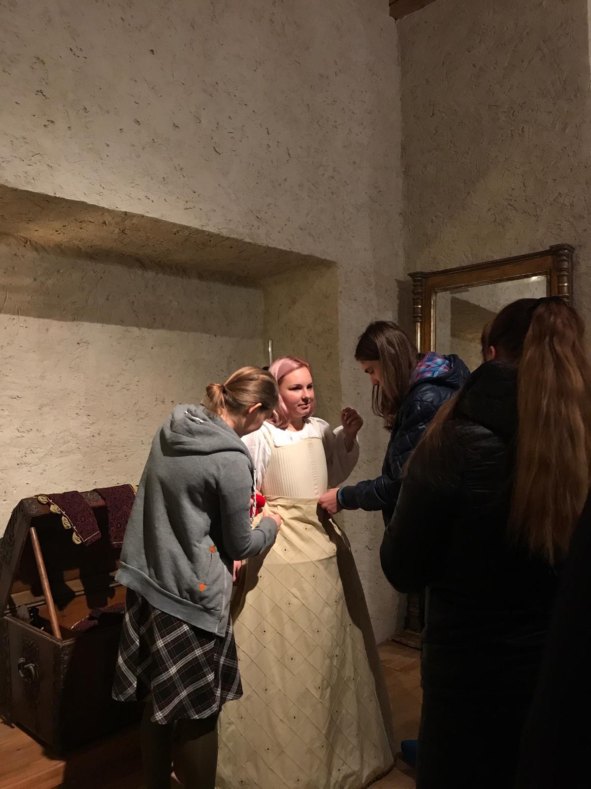 "Mēs, 11.A2 un 10.A1 klase, 22.novembrī, pateicoties projektam ''Skolas soma'', devāmies ekskursijā uz Bauskas pili. Tajā mūs iepazīstināja ar 16.gadsimta pils iedzīvotāju tērpiem, kā arī apguvām tā laika dejas. Ekskursijas laikā guvām pozitīvas emocijas, atklājām, cik mūsu prinči un princeses ir prasmīgi dejotāji. 10.A1 klases skolēni iejutās galma dāmu un kungu lomās, pielaikojot un izzinot tā laika apģērbu, savukārt 11.A2 klasei bija iespēja gūt priekštatu par seno laiku dejām."