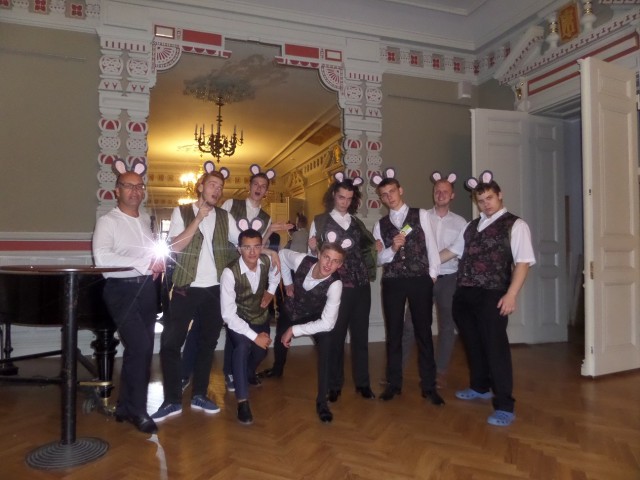Zēnu ansamblis "KPTT" pirms uzstāšanās koncertā Rīgas Krievu teātrī.