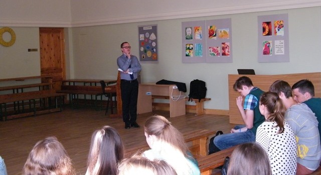 Šī gada 9. maijā akcijas "Atpakaļ uz skolu" ietvaros, skolā viesojās mūsu 2002. gada absolvents Gatis Litvins. Gatis pēc ģimnāzijas beigšanas studēja LU un ieguva jurista kvalifikāciju. Pašlaik Gatis Litvins ir žurnāla "Jurista vārds" tieslietu redaktors, Biznesa augstskolas "Turība" docētājs un pētnieks sabiedriskās politikas centrā "Providus". Tikšanās laikā 12. klašu skolēniem bija iespēja vairāk uzzināt par cilvēktiesībām Latvijā un ES, tās salīdzināt, saskatīt kopīgo un atšķirīgo. Interesanta diskusija izvērsās runājot par vērtībām. Gatis rosināja jauniešus vairāk iesaistīties nevalstiskās organizācijās. Tikšanās sniedza ieguldījumu jauniešu izglītošanā par ES jautājumiem kopumā, tādejādi palīdzot pilsoniskajai sabiedrībai kvalitatīvāk piedalīties Latvijas un Eiropas politikas veidošanā.