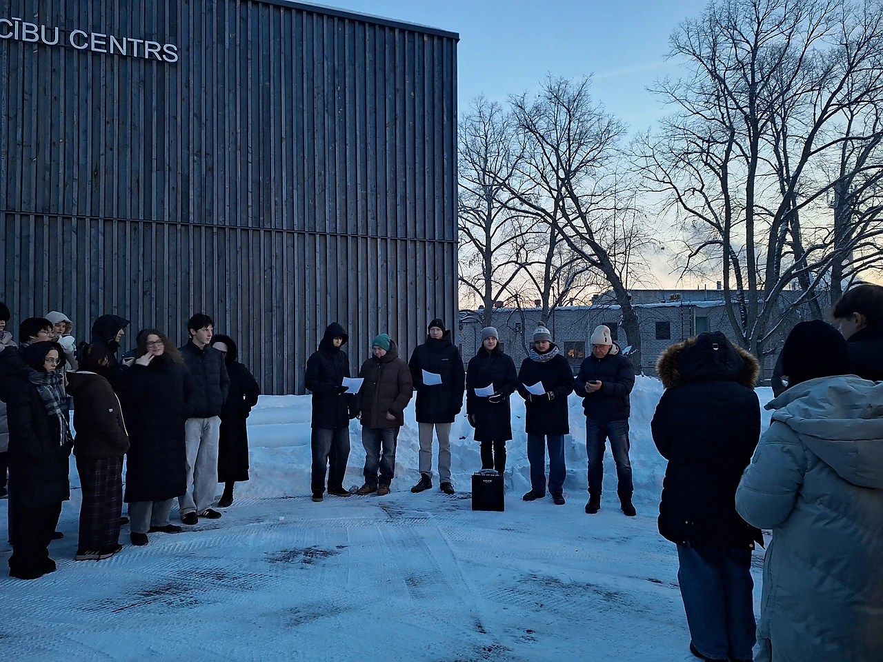 Šorīt, neraugoties uz ziemas spelgoni, ģimnāzijas saime pulcējās ap ugunskuru, lai pieminētu tos, kuri ar savu drosmi un neatlaidību nosargāja Latvijas brīvību barikāžu laikā pirms 35 gadiem.
