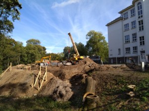 18. septembris. Būvnieki sākuši rakt pamatus jaunajai ēkai.