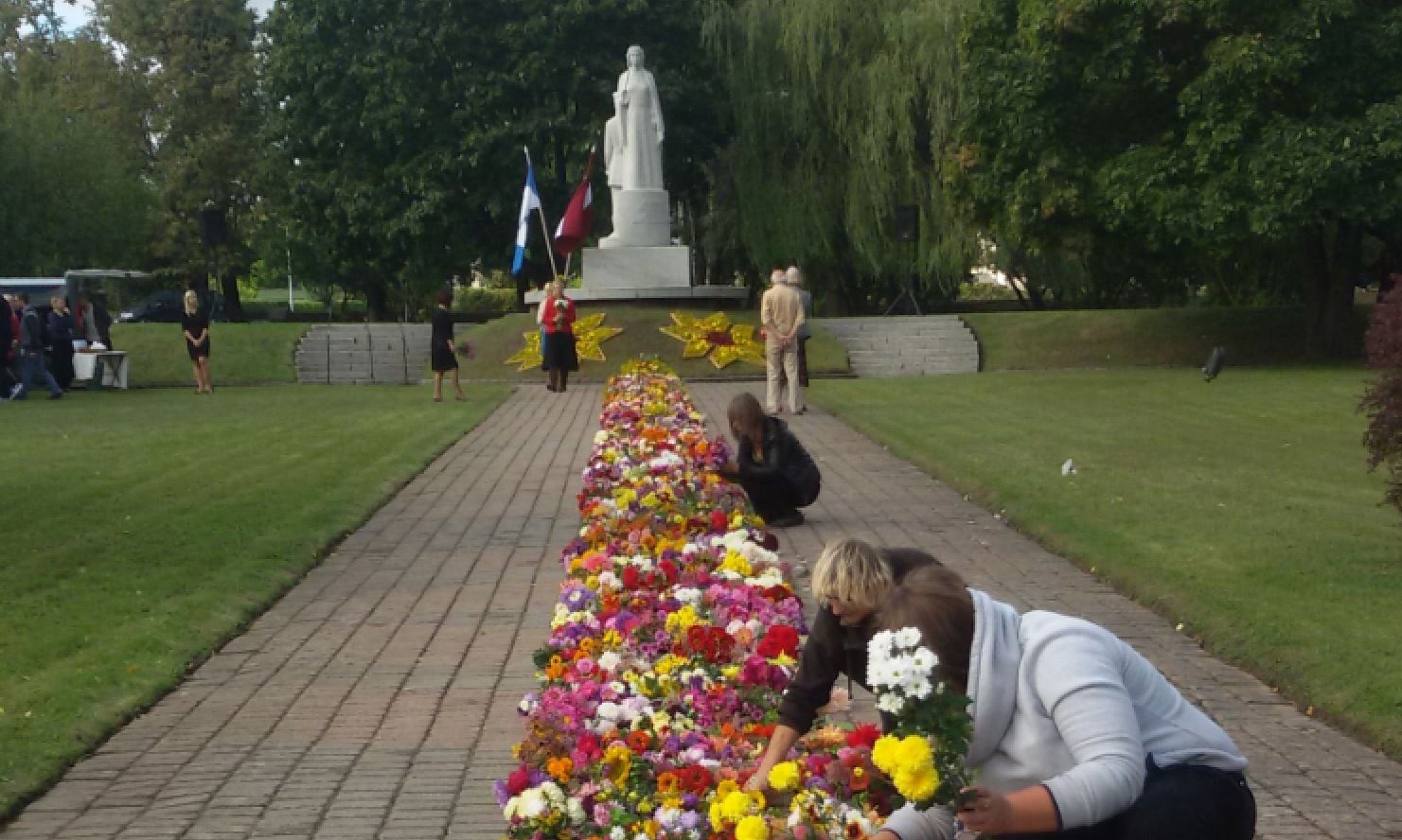 Š. g. 18. septembrī Dobeles Valsts ģimnāzijas 11. BK klase aiznesa skolas kopīgo ziedu sveicienu Dobeles atbrīvošanas piemineklim. Ziedi kļuva par daļu no tradicionālā ziedu paklāja.