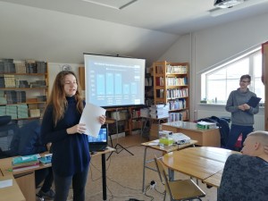 Savukārt es pati šī gada 18. janvārī vadīju atklāto stundu par tēmu "ES darbības virzieni". Stundā piedalījās DVĢ 12. BK klase, Dobeles novada domes priekšsēdētāja vietnieks G. Safranovičs, Izglītības pārvaldes metodiķe A. Celmiņa, EPB Latvijā pārstāves J. Bogustova un N. Romanovska.