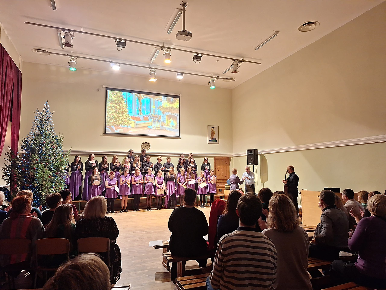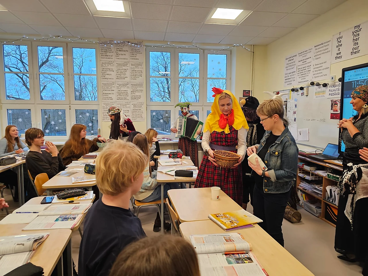 Semestris noslēdzās ar Ziemassvētku pasākumu, kuru veidoja 11.klašu skolēni kopā ar savām klašu audzinātājām. Skolēniem bija iespēja redzēt trīs lugas, kuras bija rakstījuši vai pārveidojuši paši skolēni - “Ziemassvētku dziesma” jeb “The Christmas Carol” 11.I klase , “Viens pats mājās” 11.V klase un “Ko slēpj Ziemassvētku vecītis?” 11.UK klase. Sakām īpaši lielu paldies jauniešiem un klašu audzinātājām Elitai Freijai un Inetai Žeierei!