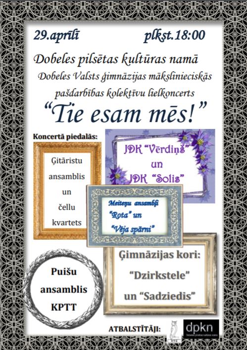 Dobeles Valsts ģimnāzijas mākslinieciskās pašdarbības kolektīvu lielkoncerts "Tie esam mēs!" 14.04.2019Drukāt atpakaļ Jautājumi, komentāri par rakstu Pievienot