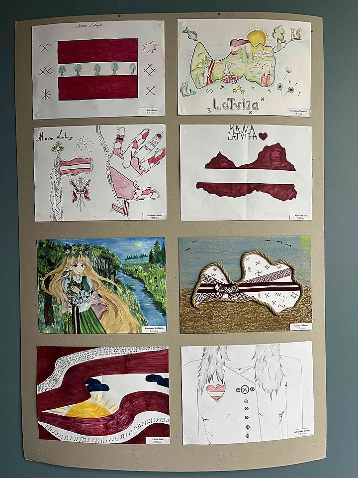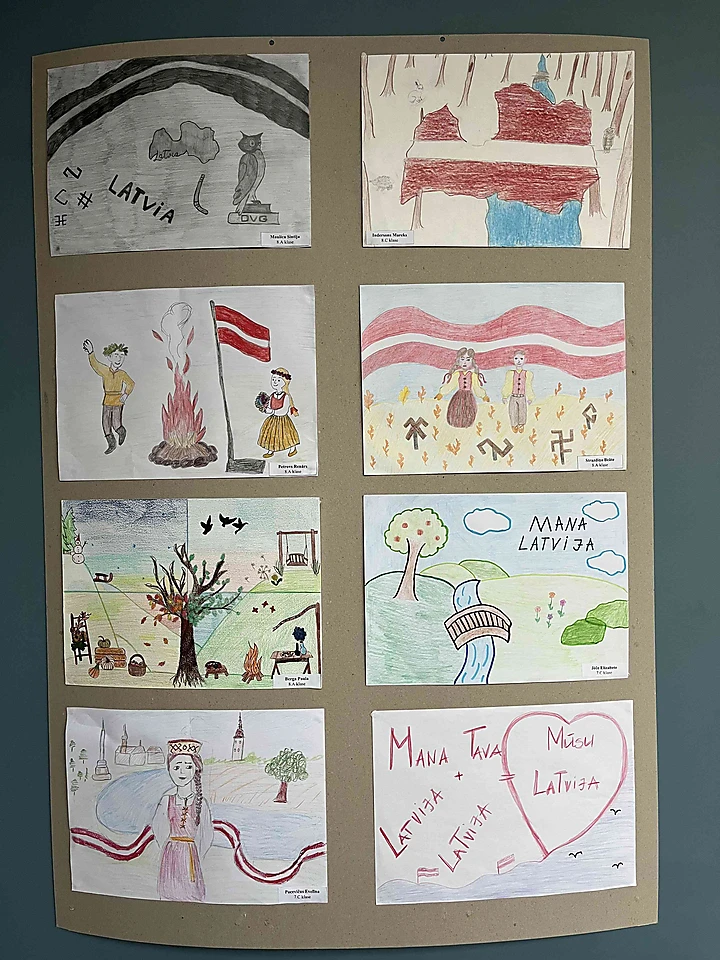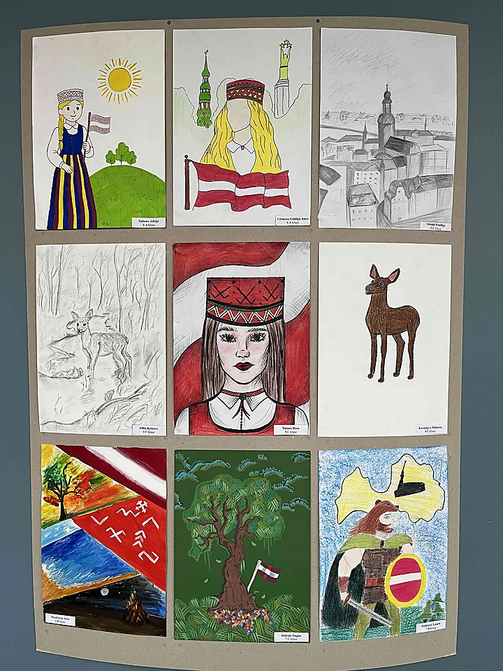Mūsu skolēni ir radījuši krāsainus un sirsnīgus zīmējumus, kuros atspoguļojas Latvijas daba, tradīcijas un patriotisma izjūta. Jaunie mākslinieki savos darbos izceļ to, kas viņiem Latvijā ir vismīļākais un nozīmīgākais.