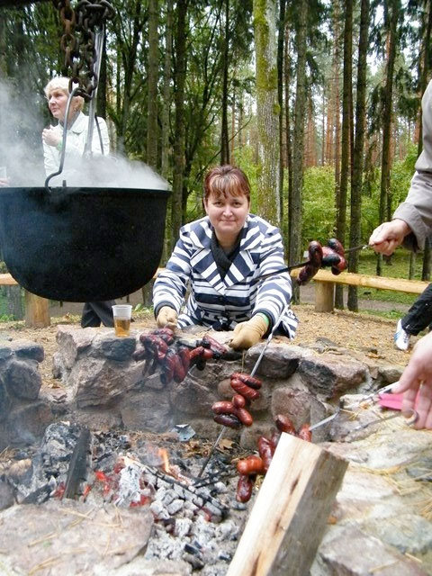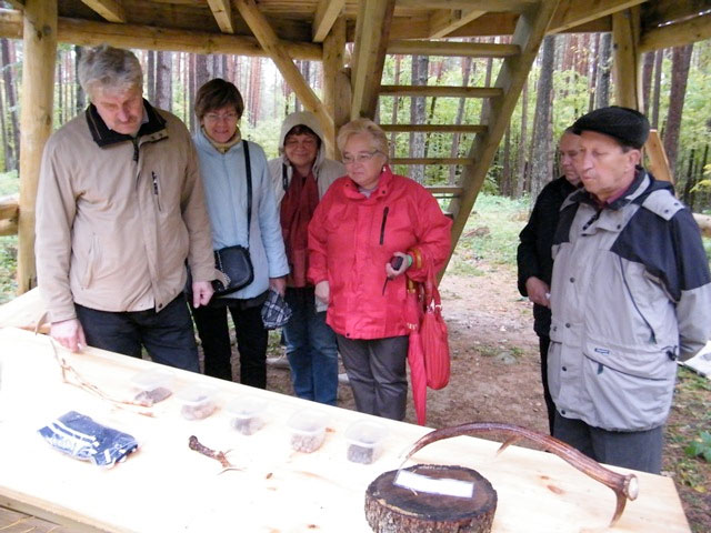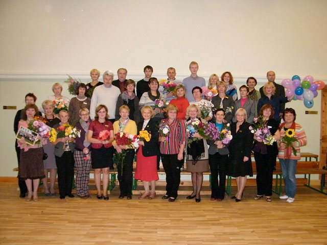 Oktobra sākums ir tradicionālais Skolotāju dienas laiks, kad visā Latvijā skolotāji svin savas profesijas svētkus. Šo brīdi ar satraukumu gaida arī mūsu ģimnāzijas topošie skolotātji – 12.klašu skolēni, lai aizstātu klasēs pieredzējušos pedagogus. Arī šī gadā 5.oktobris tika atzīmēts kā Skolotāju diena mūsu skolā. Un kas gan ir skolotājs, ja viņš pats nemācas! Kamēr jaunie skolotāji iejutās stundu vadīšanā, Skolotāju dienas mācības mūsu pedagogiem piedāvāja mūsu sadarbības partneris – Latvijas Valsts mežu Tērvetes dabas parks. Par spīti ne visai labvēlīgiem laika apstākļiem, skolotāju grupa 30 cilvēku sastāvā pavadīja gan izziņai, gan veselības uzlabošanai un atslodzei veltītu pēcpusdienu Tērvetes dabas parka vides gidu sabiedrībā. Ģimnāzijas pedagogiem bija iespēja uzzināt daudz interesanta ne tikai par pārsteidzošajām parka iespējām un daudzveidību, bet arī pašiem daudz ko piedzīvot. Smalkais sēņu lietus nespēja sabiedēt ne parka tūrisma gidus, ne skolotājus. Jaunajā skaistajā autobusu stāvlaukumā šoferis mūs ieveda izbraucot cauri čūskveida vieglo mašīnu stāvvietai un tas patiešām bija jautrs brauciens kā pa kalnu serpantīnu, vienīgi bez pašiem kalniem. Nepaguvām ne saprast, vai uzsliet lietussargus, kad klāt bija parka vilcieniņš. Šoferītis laipni sasēdināja skolotājus vagoniņos un lielu gaviļu saucienos, pa mbrīžam saklausot arī stāstījumu par maršrutu devāmies uz parka tālumtālo galu – Meža zinību taku. Sākumā mūs sagaidīja milzīgs uzraksts "Sveiciens svētkos!" un trīs vides gdidi. Jutāmies aprūpēti un gaidīti no pirmā brīža. Kopā ar gidēm Inesi Namnieci un Inaidu Jagučansku izpētījām, kā izskatās dažādu koku stumbri, kā izmanto nozāģēto koksni, zarus, saknes, kā mēra kokmateriālus, trenējāmies noteikt koku augstumu un vecumu, noskaidrojām meža attīstības cikla fāzes. Īpašie konkursiņi notika nojumītē, kur bija iespēja izmantot visas cilvēka maņas, lai visprātīgākais dalībnieks apvienotu idejas un izlemtu, par kādām detaļām runā kolēģi un ko tas nozīmē kopumā. Konkurss bija patiešām grūts, jo ne jau bieži sastopamies ar sēni, ko tautā sauc par "zemes taukiem"! Jaunums bija arī tas, ka no priežu var vārīt ļoti gardu un veselīgu ievārījumu, īpaši noderīgu pret jau skolā klejot sākušiem saaukstēšanās vīrusiem. Un kad vajadzēja atminēt koku nosaukumus un salikt no tiem vārdu, kas jāparāda ar kustībām, zibenīgi izveidojās divi deju kolektīvi, kas dejoja polku. Kamēr viena darba grupiņa cepa desiņas, pārējie devās uz medību torni, pa ceļam iepazīstot dažādus zvērus meža stendos. Torņa pakājē aizrautīgā gida Agra Ģērmaņa vadībā pētījām meža zvēru barotavas, dzīvnieku pēdas un medību trofejas. Drosmīgākie pagaršoja arī bebru "eliksīru" un pamielojās ar medījumu desiņām. Pēc meža zinību takas apgūšanas visi varēja baudīt ugunskura burvību un karstu zāļu tēju, kura ielēja siltumu nosalušajās dzīslās un smaidu sejā ikvienam pedagogam. Nu zinām arī, ka drīzumā varēsim paraudzīties uz savu dzimto pusi no putna lidojuma jaunuzceltajā, Latvijā augstākajā koka skatu tornī un būt pārliecinātiem, ka skolotājiem ir patiesi labas iespējas izglītot šeit savus skolēnus, atpūsties pašiem un aicināt līdzi citus. Pēc rudenīgā laika Tērvetē Rundāles pils mūsu skolotājus sagaidīja ar saulainu laiku un laipnu gidi. Gandrīz divas stundas pilī paskrēja nemanot laiku, jo bija tik daudz apskatāmu eksponātu! Un kur nu vēl interesantais stāstījums! Uzzinājām, ka 1735.gadā Ernsts Johans Bīrons nopirka Rundāles īpašumu par 42000 dālderu. Kāds brītiņš tika atvēlēts pils parka apskatei un tad devāmies uz Jelgavu – uz Tūrisma informācijas centru un Jelgavas Sv. Trīsvienības baznīcas torni, kam 1862. gadā tika piebūvēta smaile un tornis sasniedza 80,5 m augstumu. Lai arī šobrīd smailes nav, tomēr Jelgava ir aplūkojama no putna lidojuma. Dobeles Valsts ģimnāzijas pedagogi saka sirsnīgu paldies Latvijas Valsts mežu administrācijai un Tērvetes parka darbiniekiem par tiešām kvalitatīvi sagatavoto pēcpusdienu, informatīvo bagātību, vizināšanu ar bānīti un siltumu, ko izstaroja ne tikai jau laikus iekurtais ugunskurs, bet arī parka ļaužu atsaucība ikvienā sīkumā. Paldies sakām arī Rundāles pils muzeja darbiniekiem un Jelgavas Tūrisma informācijas centra ļaudīm.