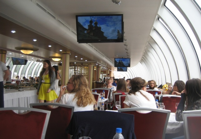 Pēc Kremļa apmeklēšanās mūs gaidīja pasakaina ekskursija pa upi Maskavu ar vienu no dārgākajiem pasažieru kuģi "Redissons".