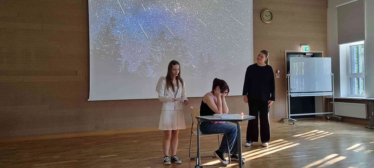 Gabriela Reinberga un Rēzija Dišteina M.Čaklā dzejas izrādē jauniešiem uzdeva jautājumu “Cik mēs viens par otru zinām?” 11.V klases meitenes Viktorija Utenkova, Baiba Tomašūna, Viktorija Pupura izspēlēja M.Čaklā dzejas stāstu “Dienasgrāmata”. Bet Katrīna Legzdiņa caur Vizmas Belševicas dzejas rindām atsauca atmiņā Latvijas ceļu uz neatkarību.