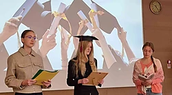 Anete Rašmane, Natālija Glušaka, Lizete Freiberga un Aleksandrs Bargatins izrādē “Ceļtiesība” aicināja jauniešus aizdomāties par mūsu izvēlēm, sapņiem, kuriem ne vienmēr ir lemts piepildīties. Taču mūsu pienākums ir saprast, ko darīsim ar piedāvātajām iespējām.