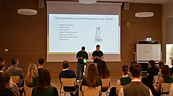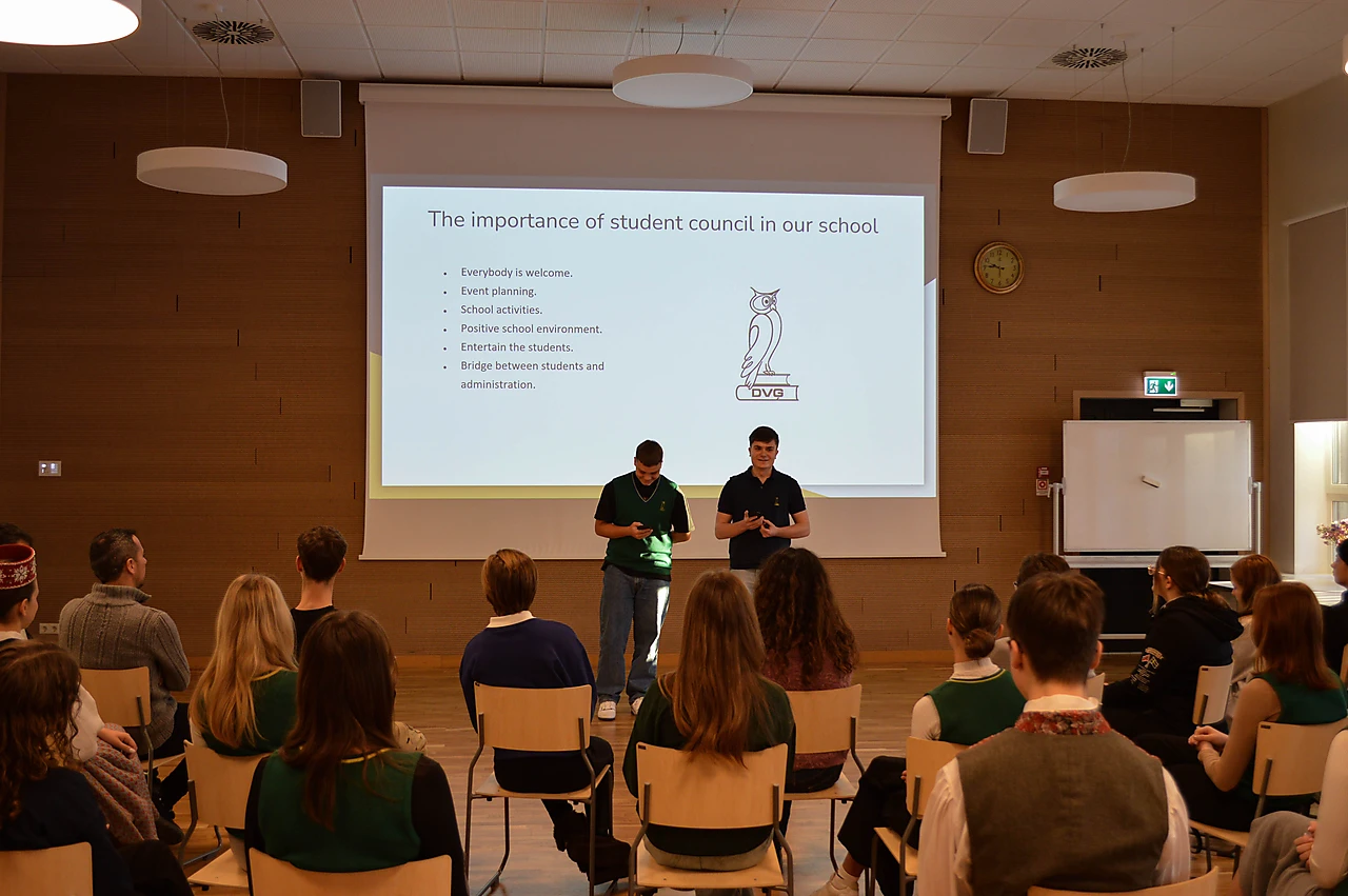 Piektdien skolēni no Spānijas prezentēja savu skolu un pilsētu, kā arī dalījās pieredzē par piedzīvoto Latvijā. Viesi no Spānijas atzinīgi novērtēja skolas telpas un skolēnu viesmīlību, kā arī mūsu kultūru attiecībā uz sakoptu vidi gan skolā, gan ārpus tās.