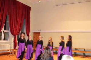 Dobelnieki savukārt sniedza viesiem iespēju ne tikai baudīt ģimnāzijas jauniešu kora "Sadziedis" sniegumu, bet arī novērtēt puišu ansambļa "KPTT", meiteņu ansambļa "Rota", Dobeles mūzikas skolas audzēkņu - ģimnāzijas skolēnu čellistu - un ģimnāzijas ģitāristu pulciņa dalībnieku prasmes.