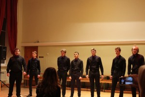 - DVĢ Skolēnu padomes aktīvistu vadībā darbojās piecas stacijas, kur dziedātāju komandām bija sagatavoti uzdevumi par un ap mūziku: bija jāatpazīst latviešu filmu mūzika, ievērojamu komponistu un diriģentu balsis, jādzied dziesmas ar izlozēto vārdu, jāatpazīst nozīmīgs muzikāls notikums pēc foto fragmenta un jāatšifrē 10 ievērojamu Latvijas komponistu vārdi. Pēc teorētisko zināšanu pārbaudes sākās rotaļu dejas, veiklības un izturības stafetes zālē diriģenta Raimonda Bulmera vadībā, kur līdzjutēju emocijas acumirklī pārvērtās hokeja spēles cienīgos decibelos! Vakars nevarēja vien beigties, un, ja būtu jāpiešķir balva visnaskākajiem dziedošajiem dejotājiem, to godam būtu pelnījuši Kuldīgas un Dobeles Valsts ģimnāzijas koristi!