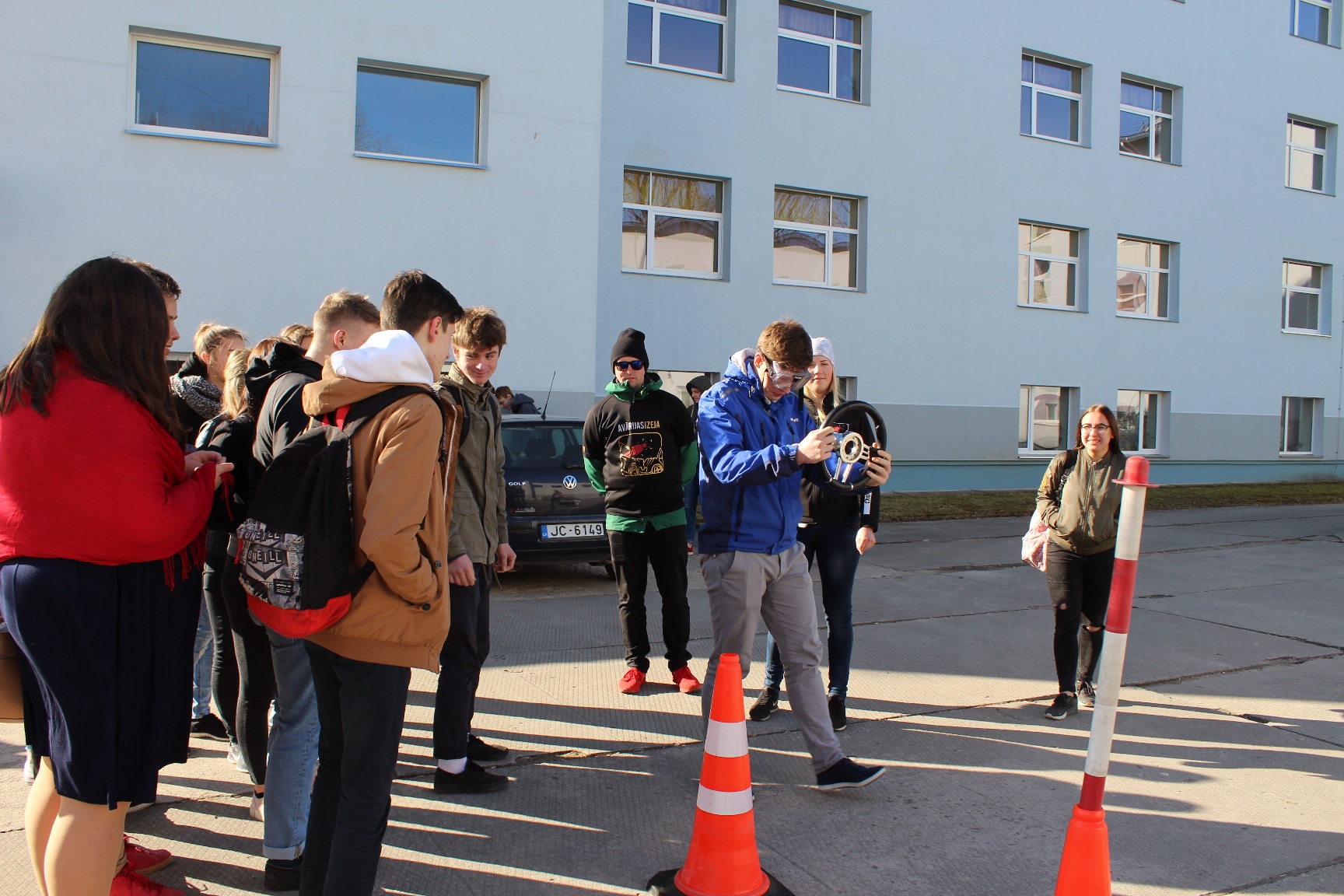 Tikšanās praktiskajās nodarbēs skolēni izmēģināja brilles, kuras imitē vienas promiles reibumu. Izrādījās, ka iziet "čūsku" , lietojot "promiļu brilles", nav nemaz tik vienkārši. Pēc tam uz avārijas simulatora ikviens gribētājs varēja izbaudīt izjūtas, kādas ir autovadītājam transportlīdzekļu frontālas sadursmes gadījumā.