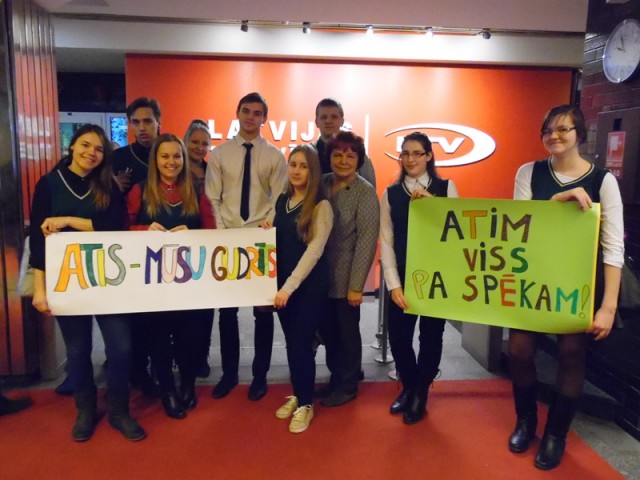 11. februārī desmit 11.A1 klases skolēni kopā ar audzinātāju Rutu Veidemani devās uz Rīgu, uz LTV1,lai atbalstītu klasesbiedru Ati Legzdiņu konkursā "Gudrs, vēl gudrāks". Bijām sagatavojuši plakātus Ata uzmundrināšanai un pārdomājuši, kā viņu raksturot, ja raidījuma vadītāji vēlētos mūs intervēt.