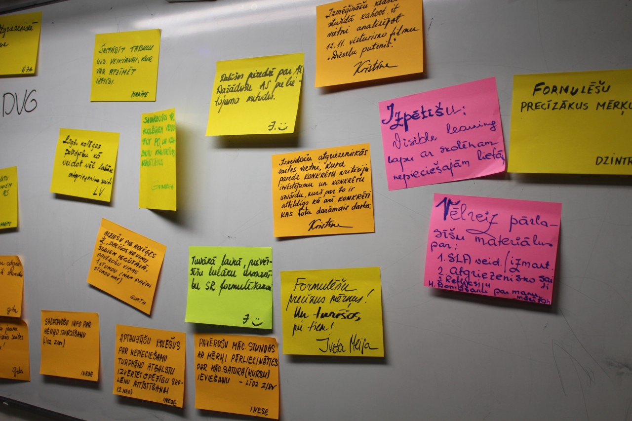Nodarbības izskaņā kursu vadītājs aicināja dalībniekus uzrakstīt konkrētus darbus, uz ko ir pamudinājis semināros dzirdētais. Gandarī, ka galvenokārt jauni pamudinājumi gūti no kolēģu sniegtās pieredzes prezentācijās un diskusijās.