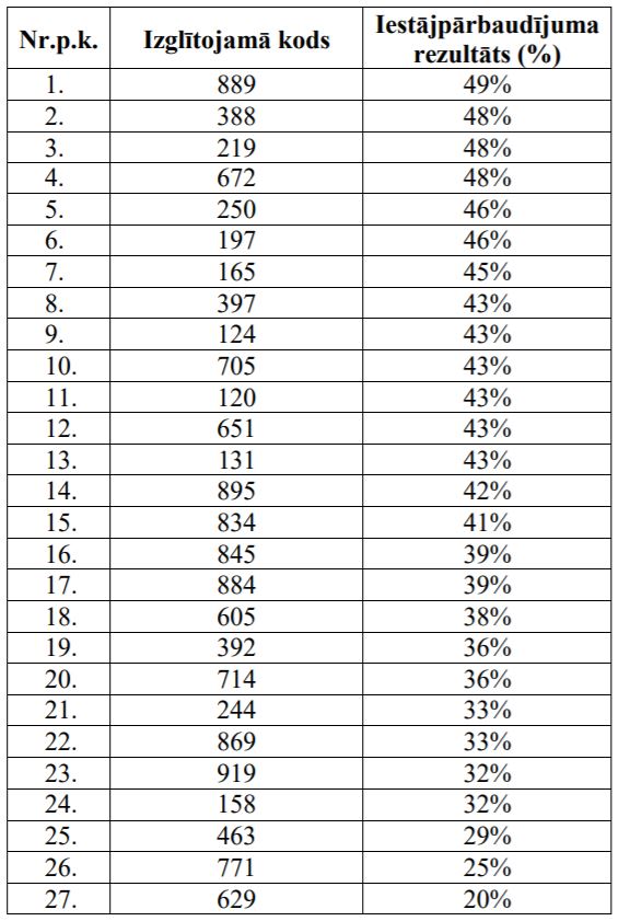 Iestājpārbaudījumu rezultāti uzņemšanai DVĢ 7.klasē 2018./2019.mācību gadam