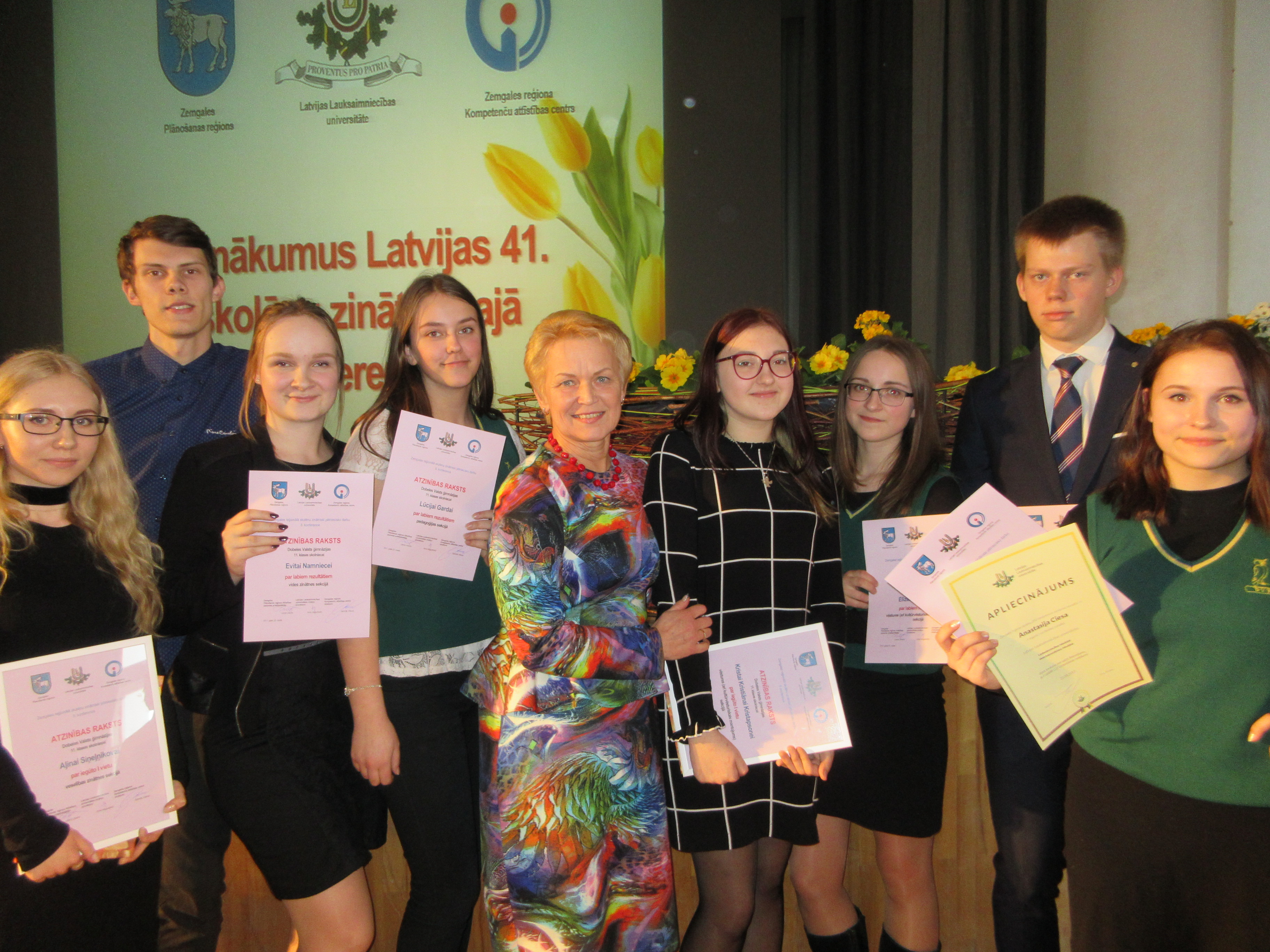 1.vietas savās sekcijās izcīnīja Krista Kristiāna Kristapsone ar darbu "Skolotāja profesijas atspoguļojums laikrakstos "Brīvais Darbs" un "Zemgale"", darba vadītāja Mg. paed. Silvija Smiltniece vēstures skolotāja, Uldis Jansons ar darbu "Drošības atstarotāji", darba vadītājs – Dr.paed.mag.phys Pēteris Puķītis, fizikas skolotājs un Aļina Siņeļņikova ar darbu "Pilngraudu makaronu izmantošana skolēnu ēdināšanā", darba vadītāja Mg.edu Inese Didže, direktore. 2.vietu ieguva Anastasija Ciesa ar darbu . "Ābolu spiedpalieku un augļu pasta "Fruttiņš"", darba vadītāja Mg.paed. Gita Heistere, bioloģijas skolotāja.