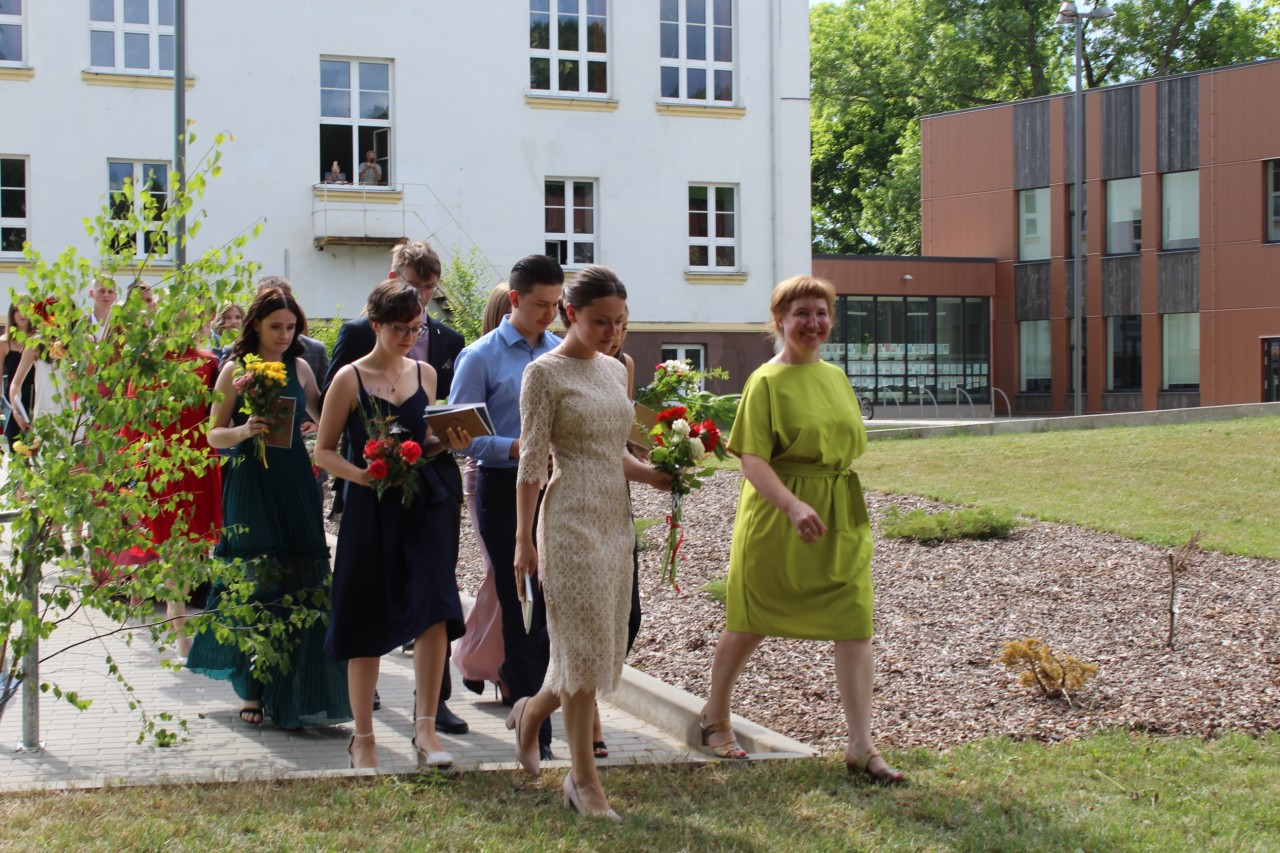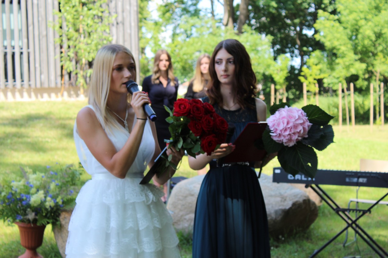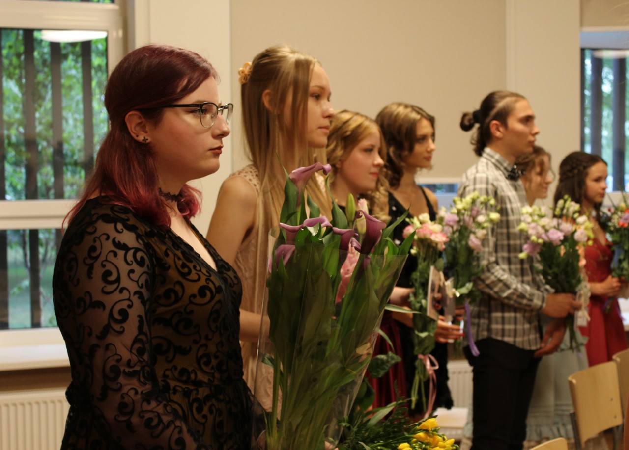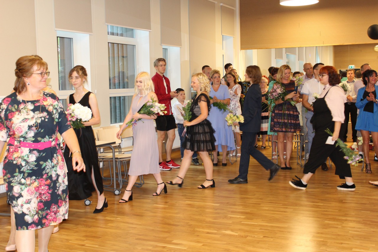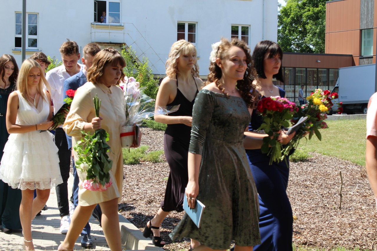Sirsnīgus ceļa vārdus absolventiem veltīja ģimnāzijas direktore Inese Didže, vietniece Kristīne Pakule un klašu audzinātājas Dzintra Stūre, Marīte Barakauskaite un Ineta Žeiere.