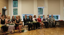 Šogad atestātu par vispārējo vidējo izglītību saņēma 55 Dobeles Valsts ģimnāzijas absolventi. Vairākiem jauniešiem ģimnāzijas direktore Inese Didže pasniedza ģimnāzijas Atzinības rakstus par labām un teicamām sekmēm un centību mācībās. Augstu apbalvojumu - Latvijas Republikas Ministru prezidenta Atzinības rakstu - par izciliem un teicamiem mācību sasniegumiem saņēma Klinta Mozule, Sanija Eihe, Anna Kosinkina un Beāte Cehanoviča. Beātei tika arī pasniegts apliecinājums par Latvijas Finanšu ministrijas un Izglītības un zinātnes ministrijas piešķirto Simtgades stipendiju, kāda Latvijā tiek piešķirta absolventiem ar visaugstāko vidējo vērtējumu, skolu beidzot. Direktore arī informēja, ka Rīgas Tehniskās universitātes Talantu programmā ir iekļauti Beāte Cehanoviča Inženierekonomikas un vadības fakultātē un Edijs Mezits - Datorzinātnes un informācijas tehnoloģijas fakultātē.