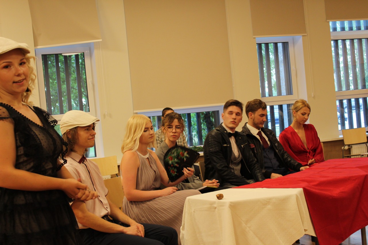 Jaunieši bija sagatavojuši pateicības skolotājiem un vecākiem. 12.A1 klases absolventi savu pēdējo kopīgo uzstāšanos bija veidojuši, atgādinot par trīs gadu garumā īstenoto savas klases “”vizītkarti” - izmeklētāju komandu, kas iesaistījās dažādos ģimnāzijas pasākumos iepriekšējos mācību gados.