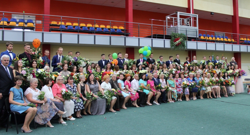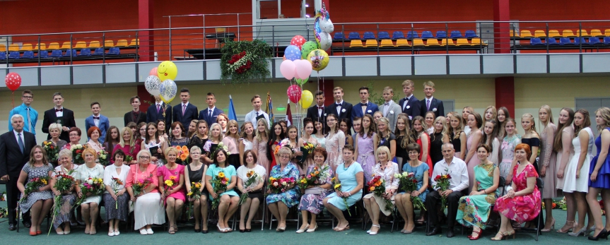 Dobeles Valsts ģimnāzijas 2017./2018. gada absolventi kopā ar pedagogiem.