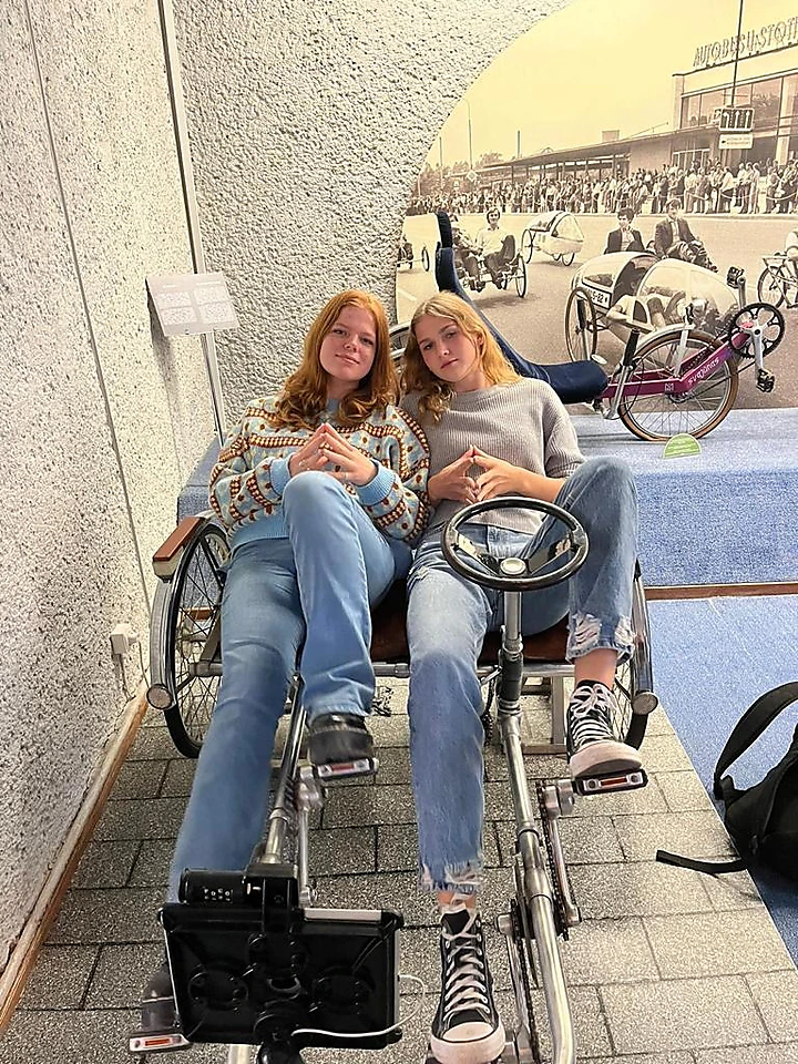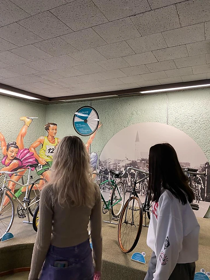 Tālāk devāmies uz Velosipēdu muzeju un apskatījām vecmodīgus velosipēdus. Paši varējām izmēģināt, kā ar tādiem braukt.