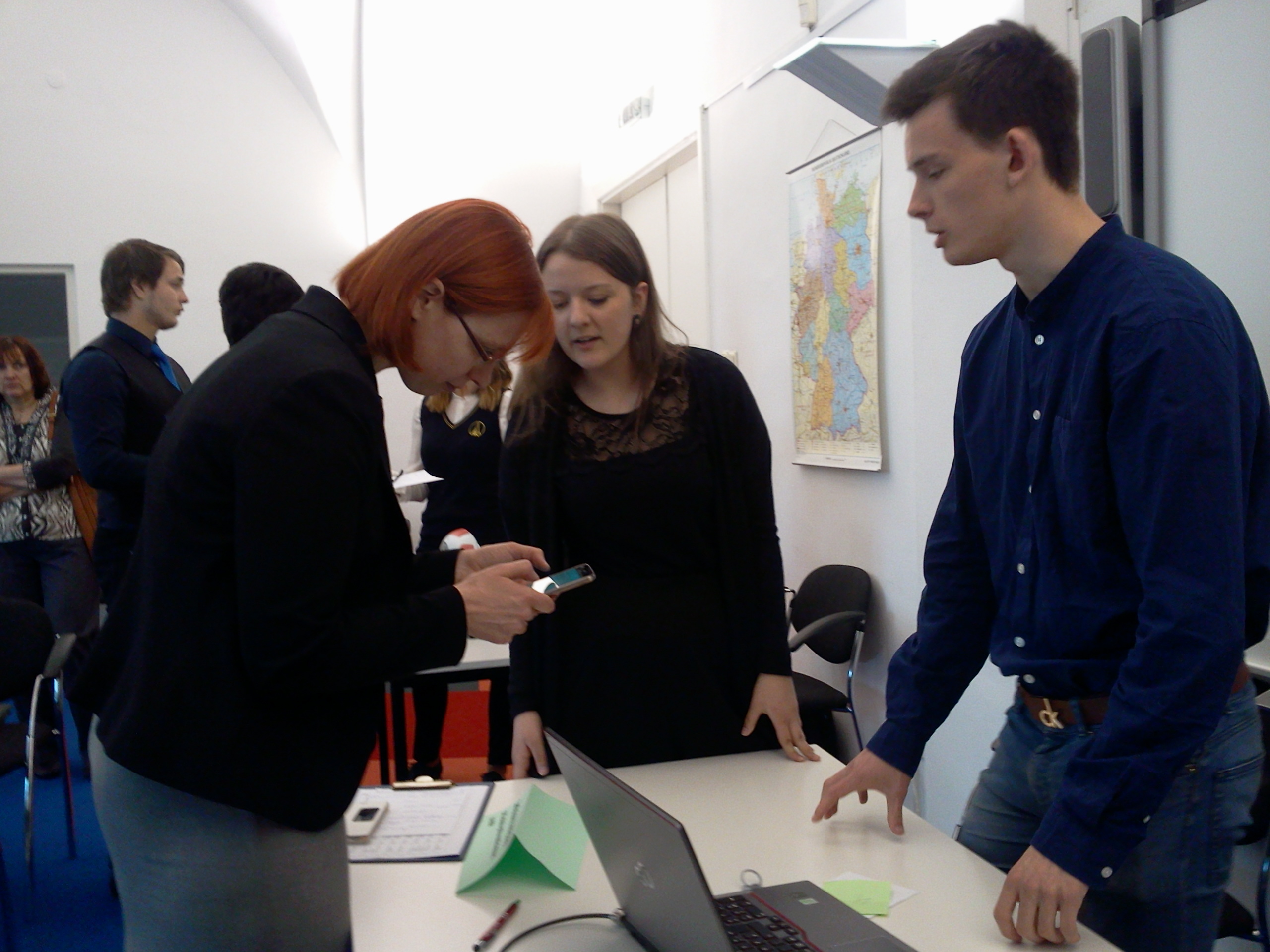 Žūrijas locekļi un citi interesenti gāja no vienas "stacijas" uz otru, iepazinās ar pētniecības darbiem un uzdeva dalībniekiem jautājumus. Helvijs atzina, ka vislabāk patika saruna ar GI direktora vietnieku Valodas nodaļas vadītāju Mihaelu Hauki. Sendija bija pateicīga par iespēju iepazīties ar GI biblioteku.