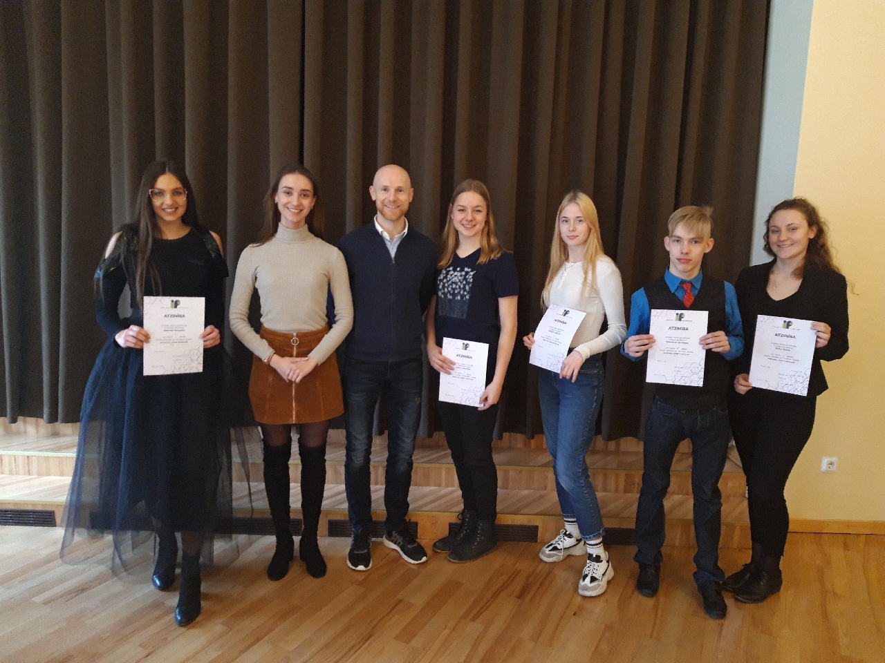 1. pakāpes diplomus un žūrijas uzslavas izpelnījās skolotājas Vēsmas Rones skolnieces Simona Mežgale (12.A1), Milānija Voitova (10.B) un Dace Zviedrāne (10.B). 2.pakāpes diploms - Rūtai Stilvei (11.BK), skolotāja Vija Elarte. Augstāko pakāpi godam nopelnīja skolotājas Rutas Veidemanes skolēns Roberts Ozoliņš (7.B). Uz nākamo kārtu Zemgales reģionā tika izvirzīti Roberts un Simona. Tā norisināsies Jelgavā, 11. martā. Veiksmi!