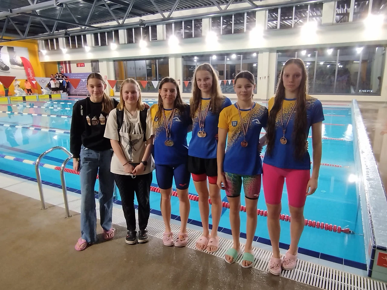 Sacensību noslēgumā meitenes piedalījās 4x100m kompleksa stafetē. Muguru peldēja Beate Jansone(šis peldēšanas veids nav viņas primārais un šoreiz šāds lēmums bija par labu komandas interesēm), brasu - Enija Djurendaka (Dobeles 1. vidusskola), delfīnu – Beāte Bula, kraulu – Karolīna Bulko. 9. komandu konkurencē meitenes ar rezultātu - 4:52.92 izcīnīja 4. vietu.