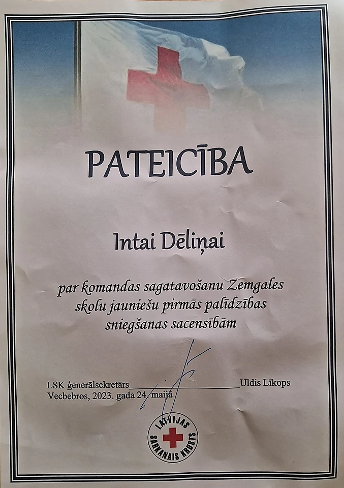 Dobeles Valsts ģimnāzija lepojas ar Ņikitu Cvetkovu, Emīlu Grantu, Elīnu Janu Aukmani, Raineru Mozuli, Naniju Kancāni, Rēziju Martu Spudas, Edvardu Juhimenko un skolas māsu Intu Dēliņu par 1.vietas iegūšanu Zemgales komitejas Pirmās palīdzības sniegšanas sacensībās skolēniem.
