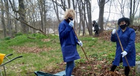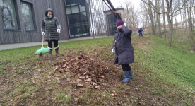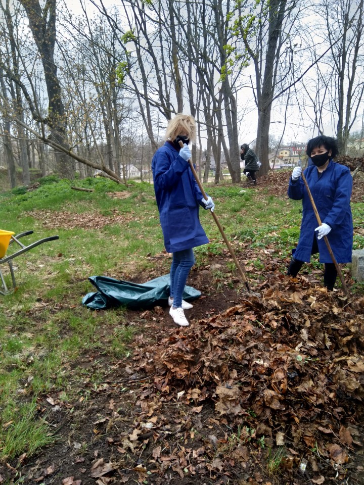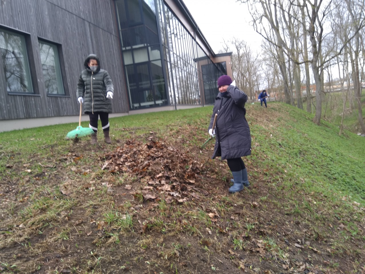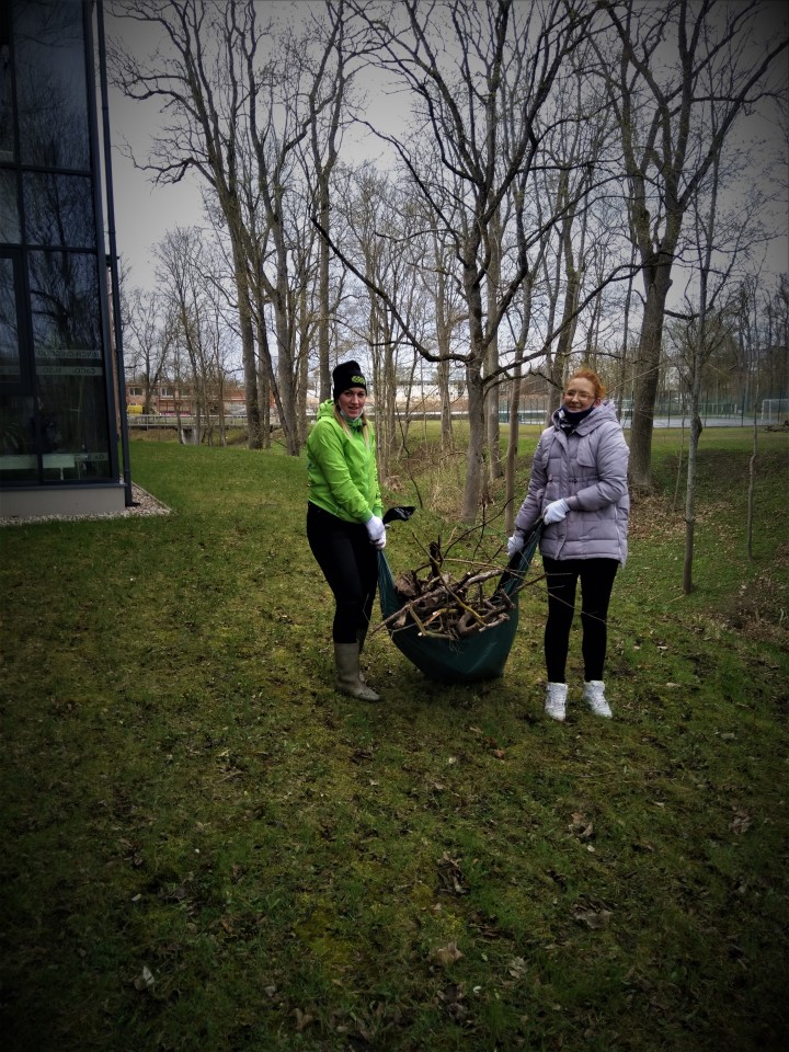 Ievērojot epidemioloģiskās drošības prasības, ģimnāzijas darbinieki saimniecības vadītāja Andra Jakovļeva un dārznieces Zinaidas Eihvaldes vadībā nelielā pulkā sakopa teritoriju pie jaunā Dabaszinātņu mācību centra. Graviņā aiz korpusa tika izvākti kritušie zari, nogrābtas pērnās lapas, salasīti arī pāris maisi neapzinīgu “atpūtnieku” pamestu atkritumu, no drazām attīrīts strautiņš. Darba noslēgumā bijām vienisprātis, ka veikuma rezultāts nu priecē skatu un ir gandarījums par iespēju kopīgi padarboties, kaut arī nelielā pulciņā.