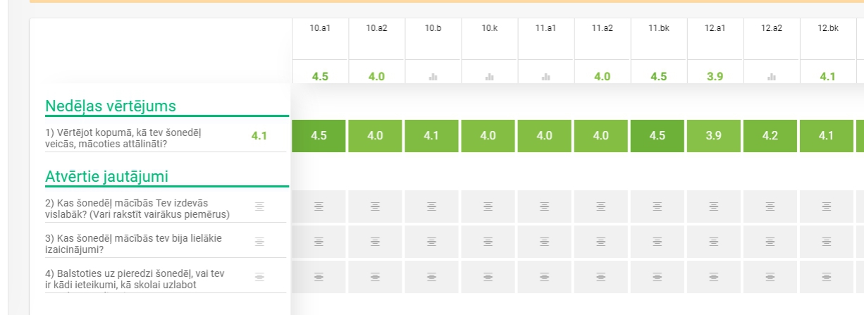 - Skolai izveidot vienu dokumentu katrai klasei, kur būtu skolotājiem redzams viss skolēnu nedēļas noslogojums.