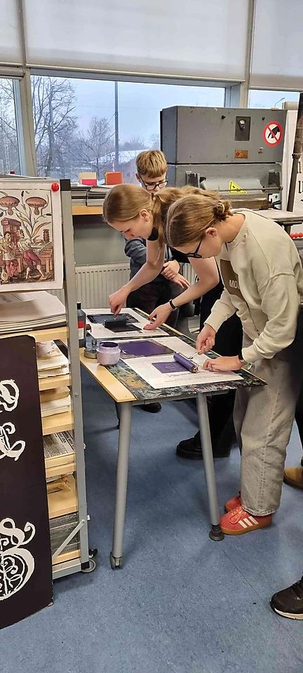 Nodarbības “Ceļojums pagātnē” laikā apmeklējām gan Latvijas dzelzceļa vēstures muzeju, gan Latvijas Nacionālo bibliotēku. Dzelzceļa muzejā aplūkojām autentiskos dzelzceļa ritekļus un uzzinājām, kā dzelzceļa attīstība kopš 19. gadsimta mainījusi ceļošanas paradumus. Smeļoties iedvesmu no savas ģimenes ceļojumiem, skolēni veidoja katrs savu ceļojuma pastkartes dizainu. Vispirms kartītes zīmēja ar roku, tad drukāja augstspieduma tehnikā ar 100 gadus senu Bostonpresi. Darbnīcas laikā skolēni attīstīja pašvadības, radošuma un rakstīt prasmes. Ieguva zināšanas kultūras, vēstures, sociālo zinību un mākslas priekšmetos.