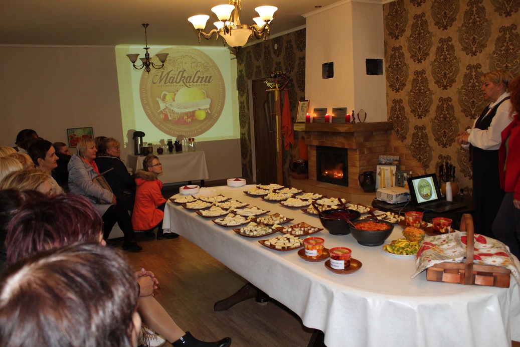 Atceļā iegriezāmies Jelgavas novada Sesavas pagasta zemnieku saimniecībā "Blūdži" jeb Mālkalnu sētā, kur saimnieko konkursa "Īstās latvju saimnieces" optimistiskā dalībniece Ināra Mālkalne. Prezentācijā par Mālkalnu siera ražotnes izaugsmi un produkciju saimniece pārliecinoši stāstīja par uzņēmējdarbības iespējām arī nelielā saimniecībā, ja vien ir uzņēmība un visas ģimenes ieinteresētība un atbalsts. Visspilgtākais apliecinājums tam ir fakts, ka Ināras kundzes vecākais dēls ir galvenais sieru gatavotājs, bet jaunākais, kuram šobrīd ir 15 gadu, jau 12 gados izcepis pirmo maizes klaipiņu. Mūs cienāja gan ar gardo pašcepto maizi, gan pāri divdesmit sieru šķirnēm, gan putraimdesām. "Blūdžos" top vairāk nekā trīs desmiti svaigo sieru veidu, te cep maizi, gatavo dabīgu tomātu sulu. Produkcija tiek pārdota gan vietējā tirgū, gan eksportēta uz vairākām valstīm.