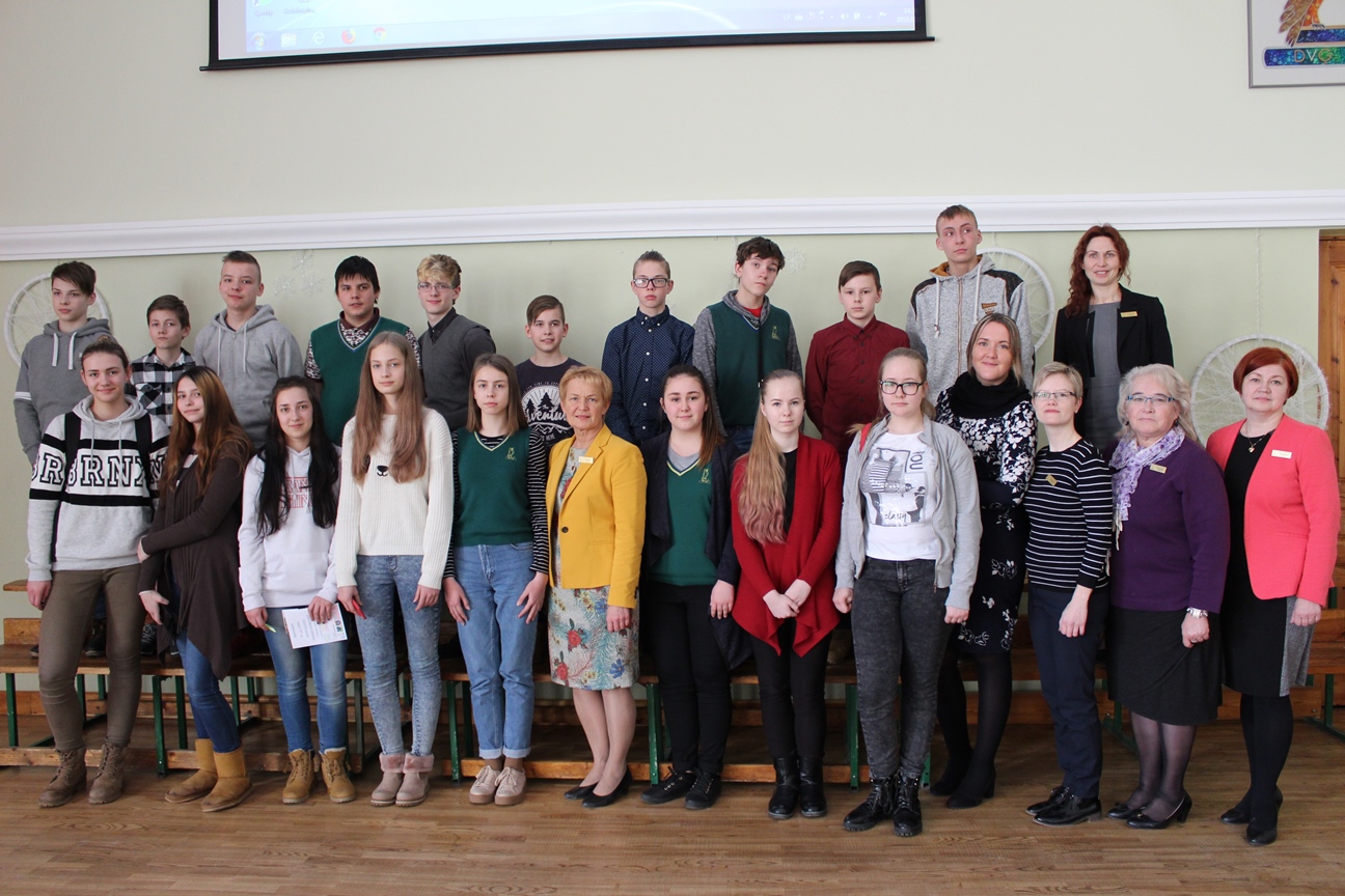 Veiksminieki kopā ar DVĢ direktori un valodu skolotājām.