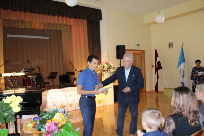 Stipendiju saņēma 11.BK klases skolniece Linda Mešķe un 10.A1 klases skolēns Toms Jaunozols.
