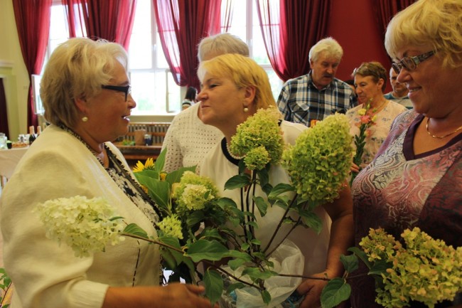Arī Dina Grīnfelde augusta nogalē saņēma dāvanas no kolēģiem.
