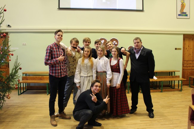 Mūsu klase iestudēja Ādolfa Alunāna viencēlienu "Pašu audzināts", 10.A1 klase rādīja fragmentu no lugas "Lielpils pagasta vecākie" un 10.BK klase – fragmentu no lugas "Seši mazi bundzinieki". Jāteic, ka skolēni lieliski bija iejutušies tēlos un labi spēlēja.