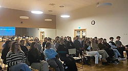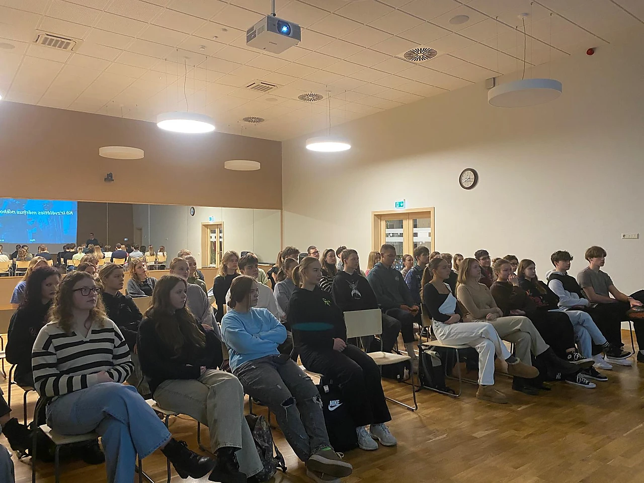 Lekcija norisinājās angļu valodā. Rolands dalījās savos pieredzes stāstos un sniedza praktiskus padomus mūsu skolas skolēniem, topošajiem studentiem. Viņš iedvesmoja jauniešus domāt par savu nākotni un to, kā izmantot savas iespējas, lai sasniegtu gan akadēmiskus, gan personīgus mērķus.