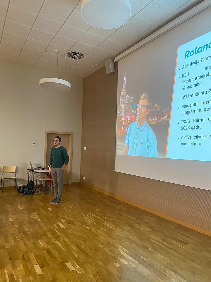Nodarbība "Studenta vēlme pašattīstīties un palīdzēt citiem" – iedvesmojoša pieredze ar Rolandu Indričānu